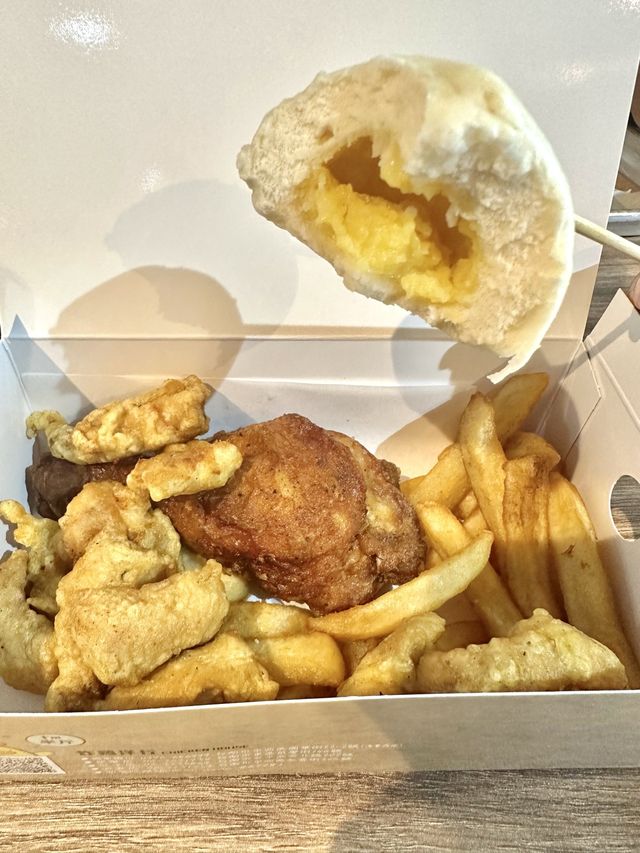 Inadvertently through this shop, attracted by the big chicken doll at the door, and the shop is also very clean and tidy, many places to sit, the staff is very enthusiastic, to us to introduce which meal is the most popular, I ordered the following meal under his introduction 💟 Double spicy wings lunch box This lunch box has 1 chicken ham, fried chicken, french fries and cream bun, all fried things are fried, feel very fresh, no oily taste, chicken is very tender and juicy, chicken is very crispy and meaty, fries thick enough, sprinkled with cumin powder, no tomato sauce is good 💟Cold brew tea It was a drink included in the meal. I thought it was a cup of tea at first, but I didn't think it was a bottle. It's such a big bottle. It's really good. You can take it away and drink it all the way #Taiwan must-visit photo spots