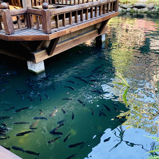 Tucked away in Taichung's downtown district, Wuwei Caotang is a tranquil tea house that offers a peaceful escape from the hustle and bustle of the city. Opened in 1994, this tea house features wooden buildings arranged around a beautiful central pond, creating an elegant space with connecting corridors and gazebos. The building incorporates traditional Taiwanese architectural styles with Japanese concepts of "wabi-sabi" and Zen, particularly the simple and refined aesthetic of Japanese gardens and tea houses. This fusion is a modern interpretation of the cultural influences Taiwan underwent during the Japanese colonial period (1895-1945). The ambiance, blended with Japanese elements, invites visitors into a tranquil moment. At Wuwei Caotang, you can enjoy high-quality Taiwanese tea made with carefully selected tea leaves from Taiwan's renowned tea-producing regions, such as Lugu and Alishan. While experiencing traditional tea ceremony, you can also enjoy a wide variety of snacks and meals, including brown sugar steamed buns. Known as a paradise within the city, this spot is perfect for travelers seeking a relaxing retreat. Enjoy a moment immersed in Taiwan's tea culture while overlooking the tranquil garden. 📍Address: No. 106, Sec. 2, Gongyi Road, Nantun District, Taichung City 🕰️Hours: 10:30 AM - 9:30 PM #GoAbroad #Taichung #Taiwan #TaichungSights