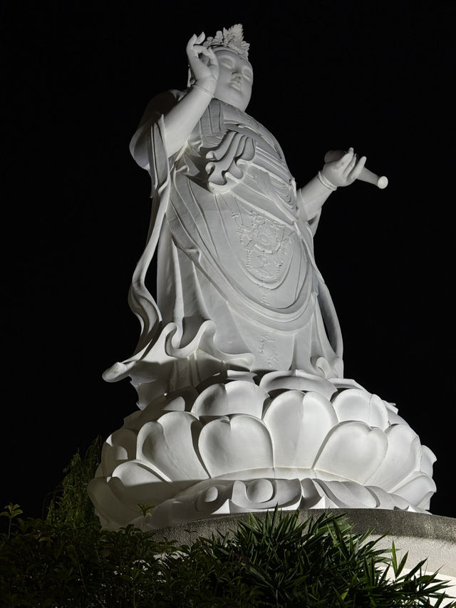 #AugustDestinations2025 In Beitun, Taichung, nestled quietly within a tranquil sacred space lies Songzhu Temple, home to the Water Flowing Guanyin. Built on a waterfront site, the temple's name symbolizes the unending flow of water and unending compassion, symbolizing the everlasting compassion of Guanyin Bodhisattva. Entering the main gate, one is surrounded by pine and cypress trees, with swaying bamboo shadows, highlighting the temple's ancient and solemn beauty. Within the hall, Guanyin's image is dignified and benevolent, her majestic appearance imposing. Holding a pure vase and a willow branch, she seems to sprinkle nectar upon the mortal world, cleansing the cares of believers.