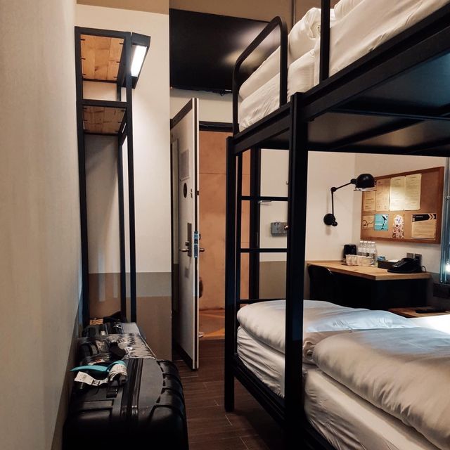 HOTEL PAPA WHALE 🐳 A chic hotel near Ximending The price we booked was 3,940 baht per night, excluding breakfast. It was a room for 4 people with a private bathroom and complete amenities. The staff were lovely and very helpful. We arrived at 10 am and could not check in yet, so we left our bags first. The staff gave us a luggage storage slip and blocked the bags we had left in the storage area in front of the lobby. When it was time to check in (we had not returned yet), they took the bags up to our room. When we returned from our trip, we checked in, received the key card, and went up to our room 😊 There are many convenience stores and restaurants near the hotel. We were very impressed by this place because they cleaned it every day. We went to get dolls and piled them up. When we returned to the room, they arranged them beautifully. The towels and hair dryers were also changed every day. For anyone looking for a place to stay in Taipei, we recommend this place as an option. If we have the chance to visit Taipei again, we will go back to stay here. I like it very much 😆 Note 1 The hotel is a walk from Ximen Station. Quite far (about 10-15 minutes). If you have a big bag, it might be a bit difficult. Note 2: There are many sizes of rooms here. There are single rooms. The price for booking in advance will be more affordable. We booked close to the time of departure. It was a bit expensive. Note 3: The bunk bed is very high. It is tiring to climb up and down. It is not suitable for people who toss and turn and are afraid of heights. #TaiwanReview #TaiwanTravel