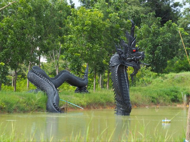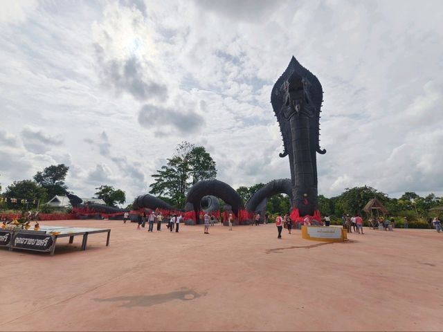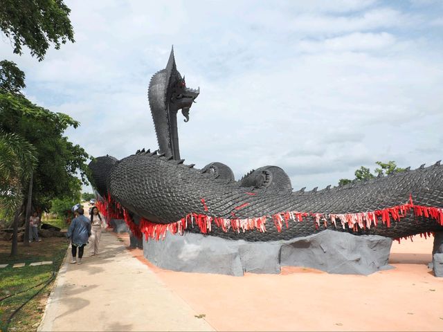#GetDiscountsWithoutLuck#BeautifulTemplesAroundThailand #VisitChaiyaphum #SililTrip Phaya Nilkan Naga at Thammasathan Thepsathit, Thepsathit Meditation Center, Wat Thepsathit, Thepsathit District, Chaiyaphum Province. This is another must-see destination for spiritual seekers visiting the fields of wild ginger flowers in Chaiyaphum Province. The Phaya Nilkan Naga statue, approximately 25 meters tall and 130 meters long, is a strikingly black figure, standing prominently on the roadside. Many people come to pay their respects and pray for good fortune and career advancement. The temple provides a complete set of offerings, including flowers, incense, candles, and lucky incense sticks. Donations can be made according to your faith. Location: Wat Thepsathit, located on Suranarai Road, Wat Tabaek Subdistrict, Thepsathit District, Chaiyaphum Province. 🕰️Opening Hours: Open daily, with admission available at all times.