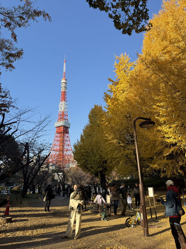 🗼When visiting Tokyo, besides enjoying the observation deck of Tokyo Tower, don't miss the surrounding photography spots for capturing stunning views of the tower. "Shiba Park" is a must-visit location, offering not only beautiful cherry blossoms and ginkgo trees but also a famous spot for photographing Tokyo Tower. Every autumn, the golden ginkgo leaves in Shiba Park create a mesmerizing autumn scene with Tokyo Tower in the background, attracting countless tourists and photography enthusiasts to capture the beauty. The location is convenient and easy to find. After exiting the station, head to the southeastern part of the park, specifically "Shiba Park Area 1." Here, you can picnic like the locals while enjoying views of Tokyo Tower. The spacious lawn provides plenty of opportunities for taking photos, and the area is not overly crowded, ensuring you can find a good spot for your shots. 🚇Transportation: Take the Oedo Line to "Akabanebashi Station" and walk 8 minutes from the Akabanebashi Exit.