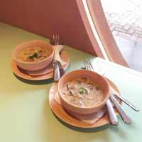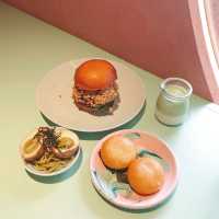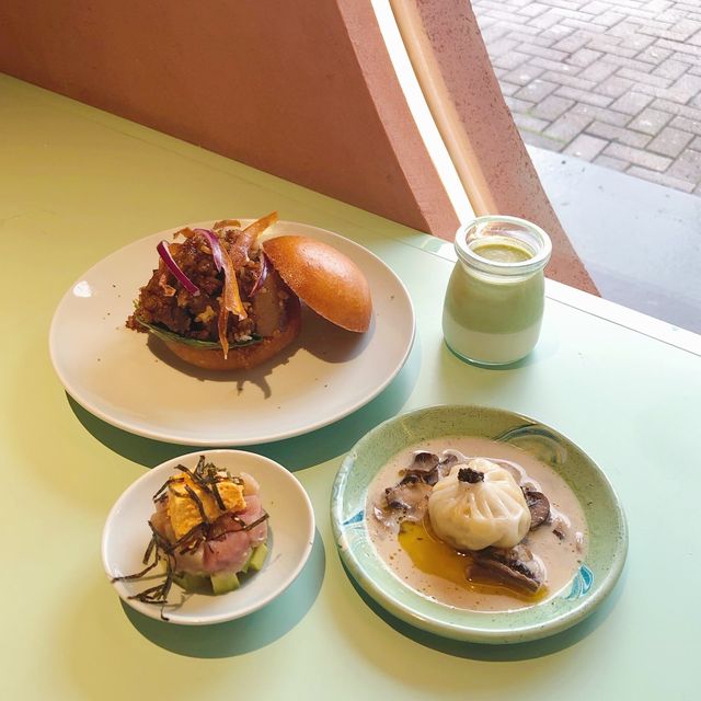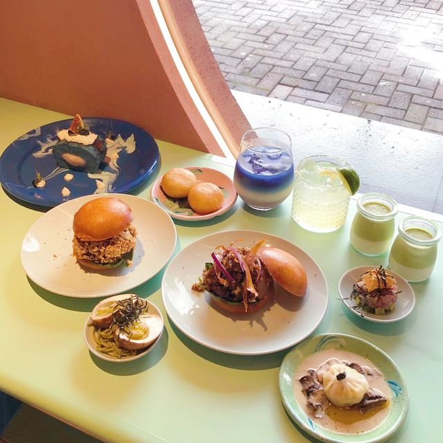 I've been wanting to come to this cafe for a long time Seeing their recently released Okinawa purple sweet potato series "I Can't Think", I thought it was quite attractive, so I asked my friends to try it 😍😍 I went to the Wanchai branch this time. The decoration of this place is pink. There are many photo spots inside. It's beautiful to take pictures📸📸                  —— We ordered two Executive Sets, which include soup, main course and dessert - the food presentation is quite exquisite, good 👍🏻👍🏻                  —— 🍱Executive Set $148✨ 📍Middle Toro tatar with racha ice cream Medium toro tatar, avocado and racha ice cream, these 3 combinations are so novel! It tastes salty and spicy, and the taste is rich in layers. It's quite good🤤🤤 📍Crab powder steamed buns The crab powder dumplings are juicy when you bite them, and they taste rich when eaten with mushroom cream sauce 📍Powder Steamed Meat Rhapsody with Fried Buns I usually love fried buns, but I have never tried a burger made with fried buns 🤣🤣 The fried buns are crispy and filled with glutinous rice and pork belly. They are quite delicious~~                  —— 🍱Executive Set $118✨ 📍Tie Guan Yin Tea Egg Cold Noodles The portion of cold noodles is not much, but the texture is very bouncy~~ I quite like his tea leaf egg, very seasoned! As an appetizer, it's very appetizing 👍🏻👍🏻 📍Cheese rice cake The texture is crispy on the outside and soft on the inside, with a lot of cheese when you bite it, very smooth and tough 😋😋 📍Taiwanese-Italian fried chicken with fried buns My friend ordered this fried bun, the filling is wrapped in Taiwanese salted chicken ~~ The salt and pepper chicken is fried very crispy, the seasoning is just right ❤️❤️ It goes well with fried buns!                  —— 🍰 Okinawa Purple Sweet Potato Taro Puree with Fig Sandwich Cake Roll $48✨ The rolls look exquisite, and there are figs on top as decoration~~ It tastes very fluffy, served with fluffy and fragrant purple sweet potato, the taste is very moist😋😋                  —— 🍠Okinawa Purple Sweet Potato Latte $47✨ This cup looks beautiful! The top layer of the drink is butterfly pea flowers, the middle layer is milk, and the bottom layer is purple sweet potato puree~~ The purple sweet potato flavor is quite strong, not too sweet, great for taking pictures 👍🏻👍🏻                  —— 🍋Okinawa Sea Salt Green Cut Lemon Specialty Drink $47✨ The lemon flavor is so refreshing! The edge of the cup is dipped in sea salt, and it's quite special to drink it with soda🤤🤤                  —— 🏠 Trois Cafe Address: Shop 2-3, G/F, Central Building, 181-185 Gloucester Road, Wan Chai #cafe #romantic date restaurant #family destination #foodie #summer food recommendations #summer destination