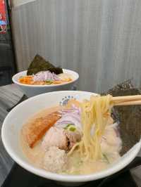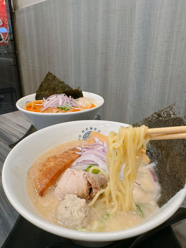 The Shinto Noodle Shop from Osaka, Japan, is supervised by Chef Kimura Mamoru of the Osaka main store. In addition to the occasional limited flavors, the noodle shop only has five ramen and Shinto Tsukemen to choose from on weekdays; and you must choose the extra-large "Selected Ramen"‼ ️ ▪️Shinto Selected Ramen HKD140 This ramen shop specializes in pork bone soup ramen 🍜 The soup base is rich but not greasy; the pork belly is purchased from Iberian pork belly in Spain, with 70% fat and full of fat 🤤 The taste is plump and tender, and the meat is rich! The soft-boiled egg is also tasty, and it is very rich with flavored bamboo shoots, seaweed, fungus, green onions, purple onions, etc. ▫️ Red Tiger Selected HKD147 If you like spicy food, you can try it. The first soup is spicy and paired with purple onions, which tastes fresh and stimulating. The ramen is of medium thickness, chewy, and the noodles are covered with juice. The thin barbecued pork tasted average, although it was thin but large enough; the two pork balls were also juicy. ▪️Shenhu Dumplings HKD45 The dumplings produced by this shop are much larger than those in other shops, and taste good. They are very tasty with shredded ginger and a little black vinegar, but the skin is not thin enough. The shop is clean and tidy, but there is not much Japanese atmosphere. The staff is very friendly. When they saw 👦🏻 putting the backpack on the ground, they immediately arranged for the basket to be placed! 💛 The ramen shop only accepts cash payment! Shenhu Noodle Shop 🍴Ground Floor, Anton Building, 6-16 Tai Wong Street East, Wan Chai 💰 Average Consumption 𝗛𝗞𝗗𝟭𝟲𝟲 💓 Selected Ramen Iberian Pork Belly #Register for May Hotel Tester #Food Guide #Hong Kong Food #Stay in Hong Kong Consumption #Japanese Cross-River Dragon #Cross-River Dragon Ramen
