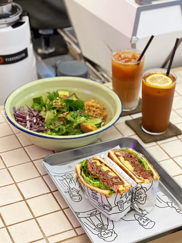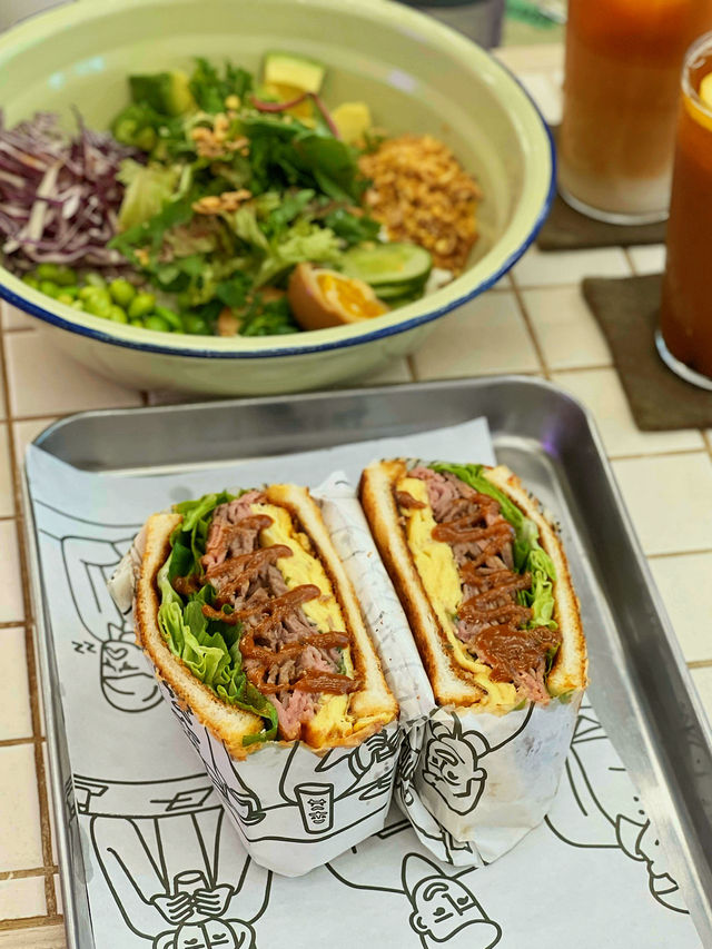 This café is located on Moon Street in Wan Chai, near Admiralty and Wan Chai stations. It specializes in creative sandwiches and other healthy foods, reinventing traditional sandwiches. They offer a variety of coffees and alcoholic beverages. . The café has both indoor and outdoor seating, with white as the main color theme. The seating mainly consists of bar stools, allowing customers to watch the barista at work. . 🔸Buddha bowl - $128 🔸Roast Beef +$30 Served with slices of roast beef that are tender, juicy, and chewy, with a rich beef aroma; a colorful healthy rice bowl made with cauliflower rice, which is looser in texture but crispier and much healthier than white rice; smooth and soft avocado; sweet and fragrant edamame; fresh and juicy cucumber; soy sauce marinated soft-boiled egg with tender whites and a half-set runny yolk, infused with the savory flavor of soy sauce; fresh green lettuce and pickled red cabbage drizzled with a tangy and sweet lemon tea vinaigrette. . 🔸Satay Roasted Beef - $118 Homemade satay beef sandwich filled with rich slices of roast beef that are tender, juicy, and not dry, with a strong satay nutty aroma; layers of thick, sweet egg omelet, balanced by fresh lettuce to cut the richness; bread toasted crispy on the outside and soft inside, spread with garlic sauce. . 🔸Hong Kong-style Milk Tea Releases the aroma of black tea, with a rich and mellow tea flavor that leaves a sweet aftertaste. The milk is creamy and smooth, combining the richness of tea with the softness of milk, resulting in a silky and delicate taste. . 🔸Hong Kong-style Lemon Tea High-quality Ceylon black tea with a strong tea flavor, sweet aftertaste without bitterness, and a refreshing hint of lemon. ------------------------------- Sleepyhead Address: Shop C, G/F, 1-3 Moon Street, Wan Chai Foodie Good Place to Visit