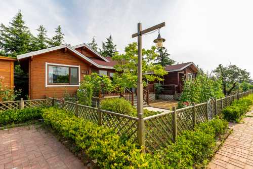 Eco-friendly wooden cabins are suitable for human habitation. According to Phoenix TV, long-term residence in wooden cabins for 20-30 years can extend a person's lifespan by 9-10 years. The interior uses pure solid wood coated with natural, environmentally friendly water-based paint, odorless, preserving the original wood color. Made from Russian natural larch, it emits a pine fragrance, making staying in the cabin feel like entering a great forest. The cabin is surrounded by mountains on three sides and faces the sea on one side. The evening sea breeze is very cool, quiet, and comfortable, ideal for vacation and relaxation. 🚗 Convenient transportation: 1 km from the harbor pier, 4 km from the high-speed rail station, 15 km from the airport! The cabin courtyard grows various seasonal pollution-free vegetables, which guests can eat for free. The estate brews its own fresh beer (no additives) and has an open-air public kitchen in the common area for barbecuing, steaming seafood, etc.! For special needs, please contact the host in advance! 🍽 Dining: The guesthouse provides breakfast, usually including dumplings, steamed twisted rolls, steamed buns, pancakes, eggs, hot dishes, cold dishes, porridge, or dough soup, with the chef randomly selecting a few items daily. Breakfast can be delivered to the room in disposable compartmentalized lunch boxes or guests can dine in the restaurant! Lunch and dinner are available by order at affordable prices; guests need to make reservations in advance! Guests can also eat in their rooms or in the open-air courtyard! 📍 Excellent location of the wooden cabin: A five-minute drive to the bustling Jiulongcheng business district, Korean Music Square Food City, three minutes to Jiulongwan Park, five minutes to the Seaside Park, 15 minutes to Naxianghai International Seawater Bathing Beach. It is the must-pass route to Xixiakou Wildlife Park and Chengshantou Scenic Area!