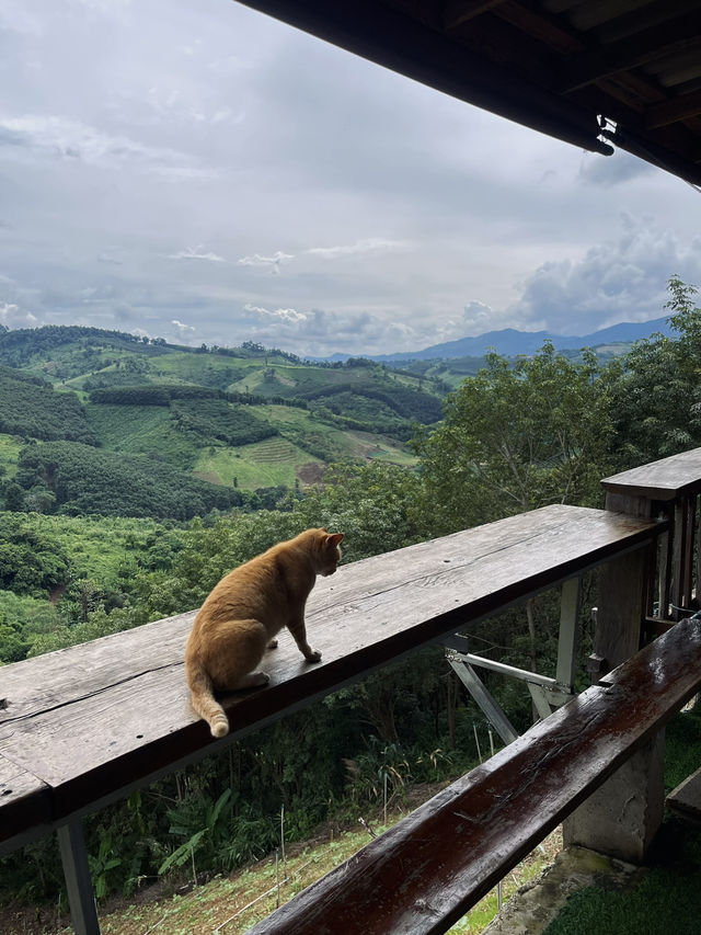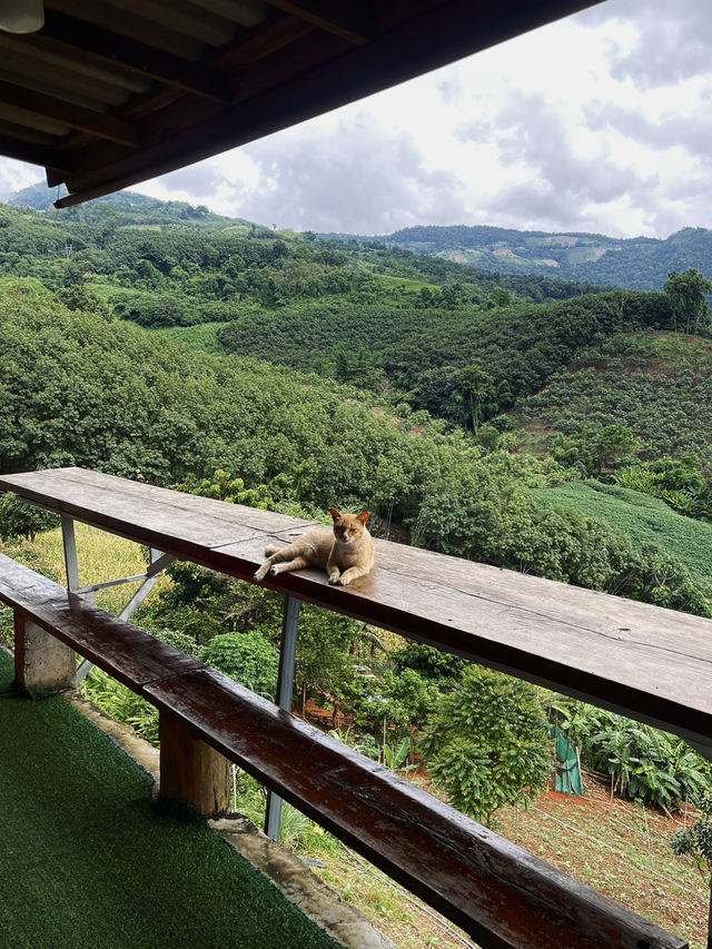 🌄 Take a break before ascending Phu Chi Fa. A small roadside cafe perfect for a break. The atmosphere is peaceful and close to nature. ☕ A simple menu with drinks like fresh coffee, tea, and toast. Refreshing and ready to continue your adventure. 🍃 A wonderful atmosphere. Enjoy a drink amidst mountain views, cool breezes, and a super chill atmosphere with your adorable cat. Simple yet impressive. Even without food, you'll experience a memorable, minimalist atmosphere. #GetDiscountsWithoutLuck #PhuChiFa #PhuChiFaCafe #MountainViewCafe #ChiangRaiTravel #NatureCafe #CafeChiangRai
