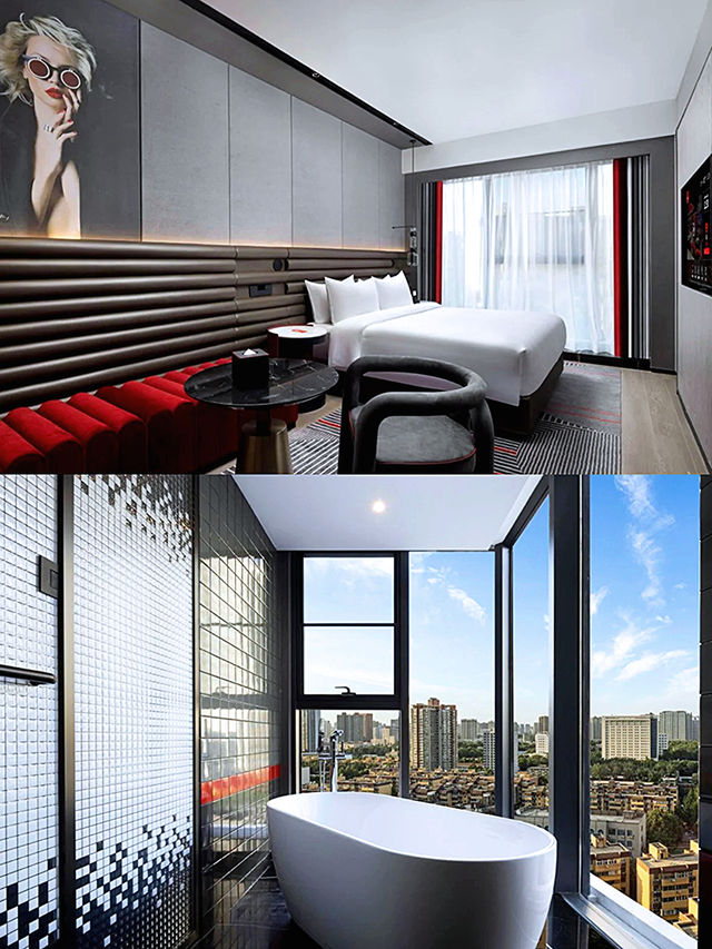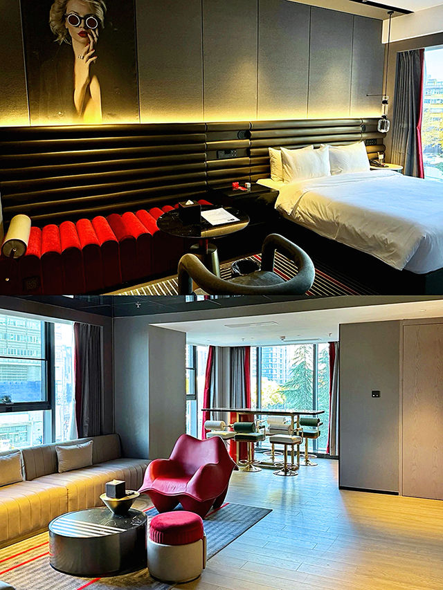 👉 It turns out that RADISSON RED is under the Jin Jiang Hotels group, and the stay experience is beyond reproach~ 👉 The avant-garde design that breaks the norm is tailor-made for young people, with a restaurant full of modern fashion elements, a bar with a great atmosphere at night, and an artistic swimming pool that perfectly matches the lifestyle of us young people. 👉 This time I stayed in a suite🏠, and I really love the bathroom!! The play of light and shadow is also too beautiful, the lip-shaped sofa is so creative, and it's so comfortable to snuggle on the sofa watching dramas at night, and having robots deliver meals and takeout to the door is so considerate~ 👉 The room is also equipped with a Dyson hair dryer (which I am really satisfied with), making the stay experience top-notch. 👉 The multifunctional pool table in the lobby has several games to choose from, and I could play with just this one all night long hhh. 👉 The bar on the second floor of the hotel is also very suitable for having some snacks and drinks with sisters at night. The overall design incorporates Xi'an culture and has many designs that match the local characteristics. The Tang horse on the first floor and the mural by the second-floor swimming pool both have a trendy and cultural collision feel, and there are paintings on the wall with elements of drama and guitar, the hotel lady said this is called 'Qin Opera meets Rock'~ 👉 The hotel's swimming pool and gym are simply a paradise for individuals, whether swimming in the constant temperature pool or lifting weights in the gym without any disturbance, it can be said to be a treasure hotel where entertainment and relaxation are combined. 👉 Next time friends come to Xi'an, I will book this hotel! It has the characteristics of Xi'an and the stay experience is also superb~