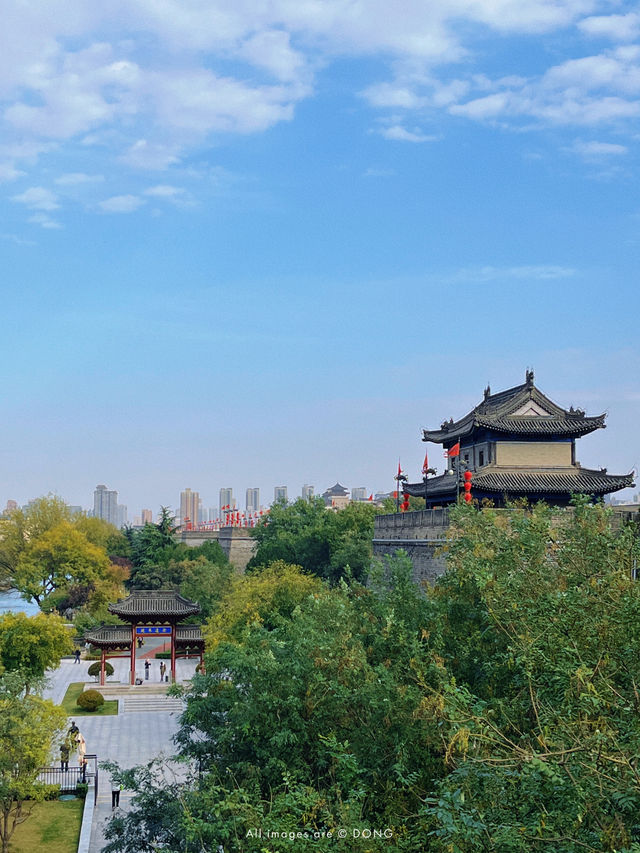 Upon visiting Xi'an, one cannot help but mention the Xi'an City Wall, the best-preserved ancient city wall in China, bar none. Built on the foundation of the Tang Dynasty imperial city, it was expanded in the early Ming Dynasty and has undergone numerous restorations during the Qing Dynasty, the Republic of China, and the post-establishment of the People's Republic of China. Today, it stands as a testament to over 600 years of history, exuding an aura of solemnity and grandeur. In fact, until the Republic of China era, the Xi'an City Wall served a crucial role in military defense. After the establishment of the People's Republic, the renovated wall regained its ancient charm and welcomed a new lease of life, becoming a popular tourist attraction for visitors from home and abroad to experience the ancient Chinese civilization. The main city wall of Xi'an has four gates: the South Gate, known as Yongning Gate, symbolizing eternal peace; the North Gate, known as Anyuan Gate, signifying peace in the distant Western Regions; the West Gate, known as Anding Gate, and the East Gate, known as Changle Gate, both representing harmony. These four gates are the original gates of the ancient city wall. Since the Republic of China era, for the convenience of entering and exiting the ancient city, several new gates have been opened, and to date, there are 18 gates on the Xi'an City Wall. It is recommended to ascend the city wall from the South Gate (also known as Yongning Gate). As ancient architecture often adheres to the principle of facing south, the South Gate is the most majestic and well-preserved gate, with its gatehouse, arrow tower, and main building all intact. On my visit to the Xi'an City Wall, I started from the North Gate as I was staying nearby. Renting a bicycle allowed me to freely explore the wall, although the uneven surface made the ride somewhat bumpy. A complete circuit of the wall took approximately two hours. 1⃣️How many entrances are there to the Xi'an City Wall? There are eight points of ascent to the Xi'an City Wall: East Gate (Changle Gate), South Gate (Yongning Gate), West Gate (Anding Gate), North Gate (Anyuan Gate), Peace Gate, Wenchang Gate, Hanguang Gate, and Shangde Gate. You can choose the nearest one to purchase a ticket and ascend the wall. 2⃣️Ticket price for the Xi'an City Wall: 54 yuan, half price for students 3⃣️Opening hours: Open all year round from 08:00 to 22:00 (ticket sales and entry stop at 22:00, the opening hours of the ascent points vary, so plan your itinerary accordingly) ✅Recommended routes: 📗Route One - East Line: Yongning Gate ➡ Wenchang Gate ➡ Peace Gate ➡ Jianguo Gate ➡ Changle Gate Start from Yongning Gate (South Gate), where most of the performances and activities on the Xi'an City Wall take place. It is also a popular spot for taking photos in Xi'an. Heading north, you can capture a great shot of the Bell Tower. 1. Wenchang Gate: The city wall at Wenchang Gate is home to the Kui Xing Tower. [Nearby attractions: Stele Forest] 2. Peace Gate: The Peace Gate is on the same north-south axis as the Big Wild Goose Pagoda and the train station. However, the distance is quite far, so the effect of photos taken with a mobile phone might be somewhat lacking. 3. Jianguo Gate: Jianguo Gate is the easternmost gate on the southern city wall. [Nearby attractions: Old Vegetable Market Cultural and Creative Block, Xi'an Incident Memorial] 4. Changle Gate: After passing the southeast corner of the city, you can reach Changle Gate. From here, you can also go to the Bell Tower and Drum Tower. [Nearby attractions: Wangji Temple, Eight Immortals Temple, Yongxing Fang] —— 📗Route Two - West Line: Yongning Gate ➡ Zhuque Gate ➡ Hanguang Gate ➡ Southwest Corner ➡ Anding Gate ➡ Northwest Corner Ascent Point ➡ Guangren Temple 1. Descend from Anding Gate. [Nearby attractions: Moon Bridge, within walking distance to the Drum Tower and Bell Tower.] 2. There are many delicious foods inside Hanguang Gate, which is also the very popular Xiaonanmen Morning Market [In the afternoon, go to Sun Temple Gate, Xiangzi Temple] 3. If you descend from the Northwest Corner Ascent Point, you can go to Guangren Temple. —— #Xi'an