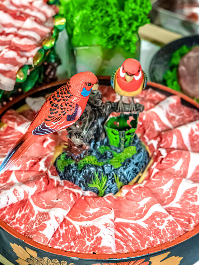 Can you believe that nestled within Chang'an Park, there exists a hidden gem of a hotpot restaurant? Its ambiance is beyond reproach, making it the top choice for business banquets and family gatherings. Moreover, it offers an afternoon tea that is simply delightful. 🔍Detailed Information —— 📍Name: Parkside Royal Camp Hotpot (Chang'an Park Branch) 🗺Address: 80 meters west of the Tourist Service Center, Chang'an Park, South City Avenue ⏰Operating Hours: 10:00-21:30 … ⭐Recommended Dishes —— 🦚 | Peacock Display: The dish is shaped like a peacock, and the quality of the meat is excellent, as evidenced by its texture. The generous portion size is also commendable. ✨✨✨ 🥩 | Spicy Chili Oil Grilled Meat: This dish is a fusion of grilled meat and Shaanxi specialty. The meat is grilled with spicy chili oil on a grilling plate, releasing a mouthwatering aroma. ✨✨✨ 🐦 | Joyous Occasion: The presentation is exquisite, especially with the two magpie models in the center. The dish carries a positive connotation, and the meat is tender and fresh. It's a must-order when you visit. … The restaurant also boasts a photogenic terrace, adorned with adorable cat motifs. Not only does this place serve delectable food, but it also offers great photo opportunities. Given its beautiful environment, it's a place you'll want to frequent.