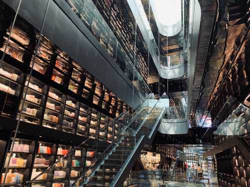 🚗 The largest hundred-meter book wall in Asia, with a total length of 240 meters, a height of 18 meters, and a collection of 600,000 books. The Blue Ocean Wind Center, an architectural artwork built over six years, covers an area of 36 acres with a total construction area of 160,000 square meters. It is the debut work of the world-renowned architectural design firm Aedas in Xi'an. From its inception, the Blue Ocean Wind Center has been committed to creating a landmark, international, and cultural urban complex. 🚗 The cultural-themed commercial MALL constructed with the hundred-meter book wall—Blue Ocean Wind·Man Lane, covers an area of nearly 40,000 square meters. It includes designer brands, composite reading spaces, themed lifestyle pavilions, cultural and creative blocks, coffee and desserts, themed dining, and family-friendly areas. It integrates reading experiences, art appreciation, and cultural leisure, leading a new lifestyle and becoming a new cultural and commercial landmark in the Northwest. 🚗 I saw this internet-famous store online, and since I was staying at the Blue Ocean Wind, I took a stroll there in the evening. Nowadays, many such internet-famous bookstores in China are more like cultural industry centers rather than just bookstores. These bookstores are no longer simply places for buying and reading books. On the contrary, there are very few people actually reading (I believe most real book readers wouldn't choose such noisy and dark environments to read in), but they have become places for check-ins and family outings. However, if it stimulates consumption, it can be considered a new business model.