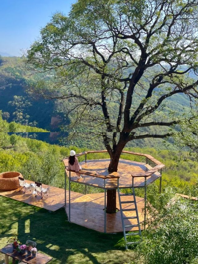 Xi'an!! Xi'an!! The newly opened cliff garden restaurant is amazing. Live Enjoy the autumn in the mountains. It's so chill to have tea by the stove. The newly opened cliff restaurant in Bailuyuan is amazing (brand new). Enjoy the fresh air in a place without a ceiling, and play with two cute little sheep. No minimum spend, Western food, coffee, and Thai food. The view is even more beautiful on a sunny day, and you can take 100 photos. The outdoors is my spiritual sanctuary. Shaanxi
