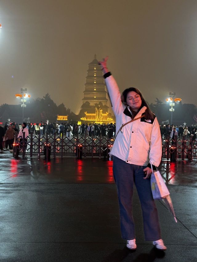 On the first day I arrived in Xi'an, I found a very unique courtyard homestay and booked a room with a large terrace. I was surprised when I entered the room! There was a large bathtub that I liked, and the welcome tea and snacks were very thoughtful, which was comforting for a solo traveler! I liked the overall feeling of the hotel. The Big Wild Goose Pagoda was right across from the hotel, and there were many places to take photos in Hanfu and visit attractions right outside the hotel. It was very easy to find and the transportation was very convenient. It was located between Dayan Pagoda Station and Grand Tang Mall Station, and there was a very unique shopping mall, Joy City, nearby. The hotel gave me a very good first impression of Xi'an ❤️ You must try the hotel's breakfast, which will make you feel like you have traveled back to the Tang Dynasty! There are Hanfu rental shops everywhere near the Grand Tang Mall, so you can also experience the feeling of being an empress. Although it was foggy on the first day, the Big Wild Goose Pagoda in the rain was also very beautiful~