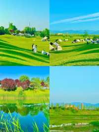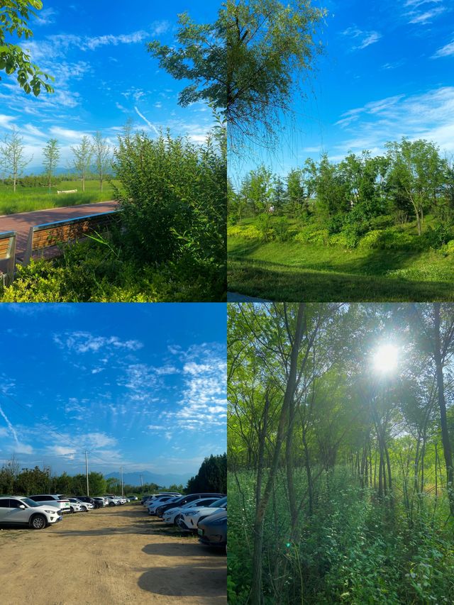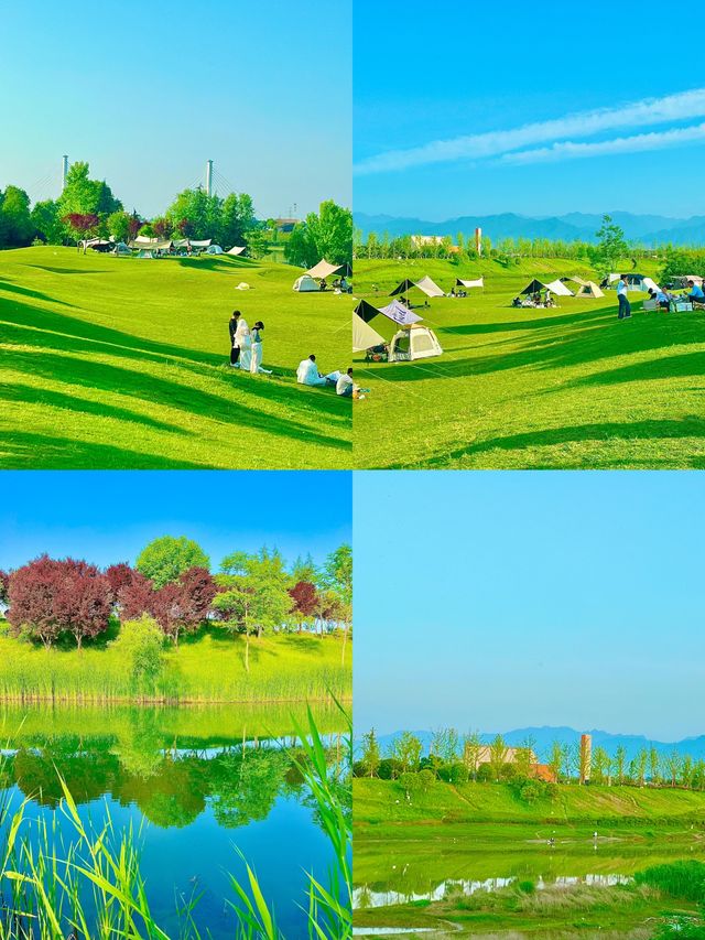 Hey guys, I recently discovered a hidden gem in Chang'an District, Xi'an - Fenghe Liangjiatan Wetland Park. It's absolutely amazing! And the best part is, it's free! Free! Free! If you want to visit, remember to search for "Chang'an District Liangjiatan Adi Village" on your GPS, and don't navigate to the parking lot. The parking lot is far from the park and is on the other side of the lake. If you accidentally navigate to the parking lot, don't worry, you can take a tuk-tuk directly to the park. As soon as you enter the park, you'll be greeted by a large expanse of lush green lawns, and the scenery is so beautiful that you'll be amazed! This environment is perfect for bringing your kids to play! You can camp in the park, but be aware that you can't set up canopies or tents. The staff will patrol regularly and ask you to take them down as soon as you set them up. The loudspeaker announces that pets are not allowed, but in reality, you can bring them. So, if you want to take your furry friends out for some fresh air, it's totally fine. Also, make sure to bring your own food, as there are no shops or snack stalls in the park. If you get tired and want to eat, the nearby Capital Outlets is a good choice, with a variety of specialty foods and stir-fried dishes. After leaving Adi Village, it's a 5-minute walk to the reservoir, where the roadside is filled with beautiful white flowers. You can set up tents by the reservoir, and there are more people, as well as stalls selling snacks and children's toys. However, the scenery here is not as good as inside the park, as it's just a reservoir. I think it would be especially comfortable to visit here in the summer after 4 or 5 pm. I'm already planning to visit again in the summer, so you should plan your trip too!