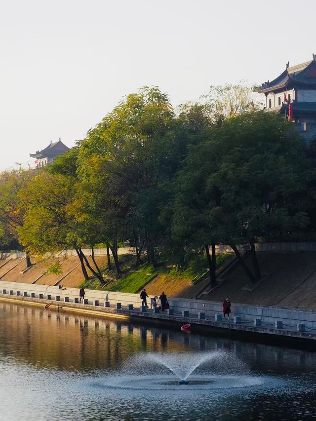 Who would have thought! After getting tired of visiting the Terracotta Warriors and Big Wild Goose Pagoda in Xi'an, I accidentally discovered this park hidden by the city wall, instantly filling the autumn romance to the brim✨ As soon as you enter the park, you’re stunned by the full screen of golden yellow! The tall plane trees form a "golden tunnel," sunlight filters through the leaves onto the stone path, making a rustling sound underfoot, and every casual shot looks like a cinematic masterpiece📸 If you come early, you can also see grandparents practicing Tai Chi and singing Qin opera, full of the authentic old Xi'an vibe~ There’s also an amazing lake view in the park! The water is so clear you can see the swimming little fish, the reeds by the shore sway with the wind, sitting here to enjoy the breeze and eat some freshly bought zenggao (steamed rice cake) makes all worries blow away😌 Oh, and there’s a vintage red pavilion by the lake, paired with the distant city wall watchtower, ancient style lovers will be ecstatic, wearing Hanfu to take photos will definitely produce stunning shots! Be sure to stay here at dusk to watch the sunset! The setting sun dyes the sky orange-pink, the afterglow sparkles on the lake surface, even passersby can’t help but stop to take photos, this gentle atmosphere is truly healing~ Tips: The park is free to enter, with shared bike parking at the entrance, super convenient transportation It’s recommended to wear light-colored clothes to better match the autumn scenery There are more people on weekends, if you want empty scenes, choose weekday mornings Xi'an locals, don’t just go to the popular check-in spots! Parks like this, where history and nature collide, are the real romance of Xi'an~