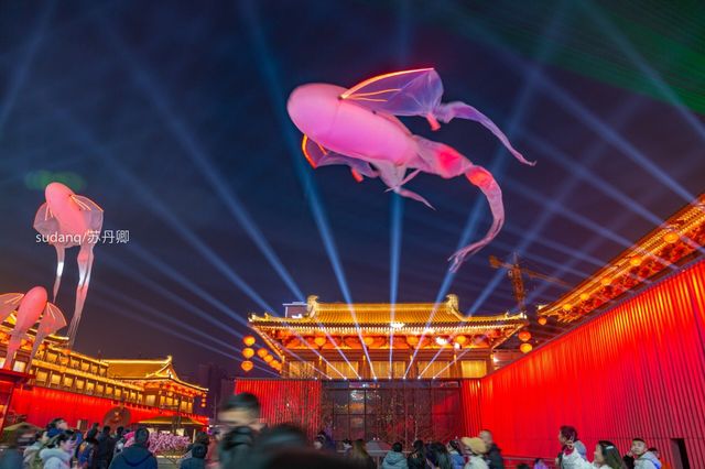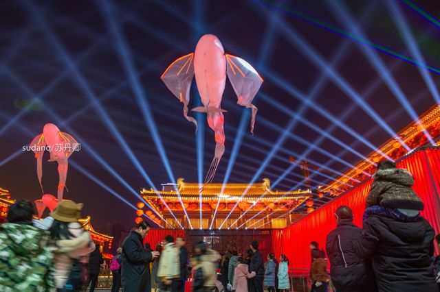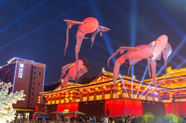 Datang never sleeps in the city, I really want to stay and not go! How dare you ask Xi'an for housing prices? Last night visitors in Chinatown, the lights will pass the New Year, just when I sighed the charm of the ancient capital of Xi'an, the radiant air suddenly appeared... big fish? Regardless of adults or children, everyone is attracted and has stopped to look up. Such a Xi'an, such a Chinatown, dreams like a dream!