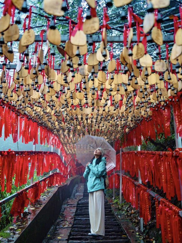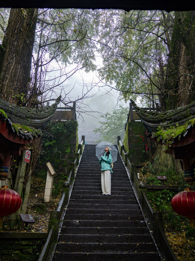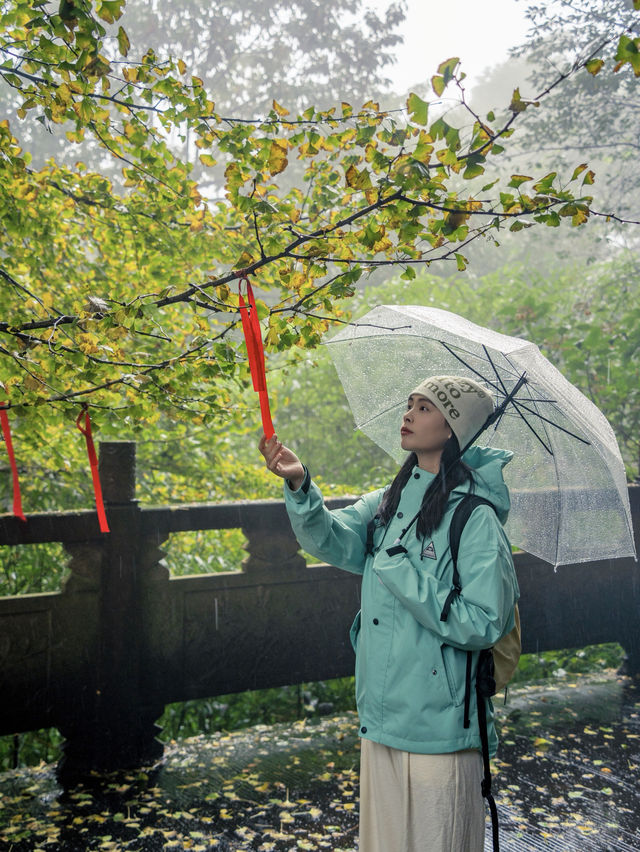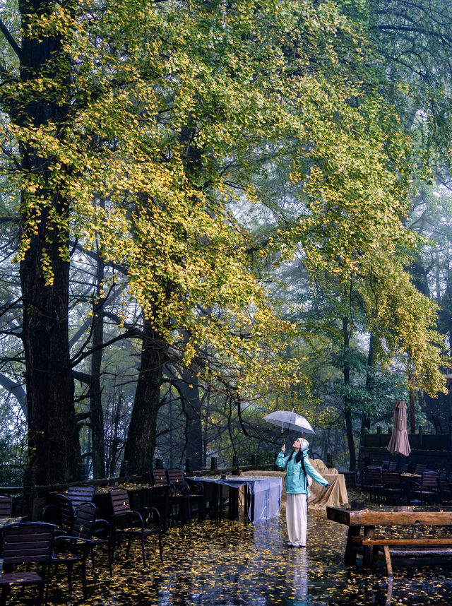 I rarely use the word "stunning" to describe a place... until I went to Ya'an, Sichuan 🍃😭 Misty forests, ancient ladder trails, ginkgo trees, stone paths, red walls... The ancient ginkgo trees in the rain and fog are just so magical!! 🍂 You can also breathe in the fresh air of nature to your heart's content~ It's really, really, really healing!!!! The energy field of a person 🔋 - 👭 Mengding Mountain one-day tour route: The World's First Teapot ➠ Ancient Ladder Trail ➠ Tiangai Temple (you can take a cable car 🚠 here to shoot the red walls + ancient ginkgo trees) ➠ Tianxian Pool 📷 Photo spots sharing: ✔️ The World's First Teapot Super beautiful teapot check-in spot 🫖! Shooting from below can capture the hand holding the "teapot" beyond the frame!!! ✔️ Ancient Ladder Trail A super photogenic forest trail 🌳 feels like the Land of Oz!! The atmosphere is full on rainy and foggy days... 🌫️ ✔️ Tiangai Temple The thousand-year-old ancient ginkgo tree here has already turned yellow!!! Shot on 10.17!! It's really stunning... Drinking tea under the tree is so cozy 🍂 · Every breath of air here is full of negative oxygen ions If you get tired, you can take the cable car 🚠, no need to worry about your stamina!! And the double autumn medals this time are so beautiful!!!