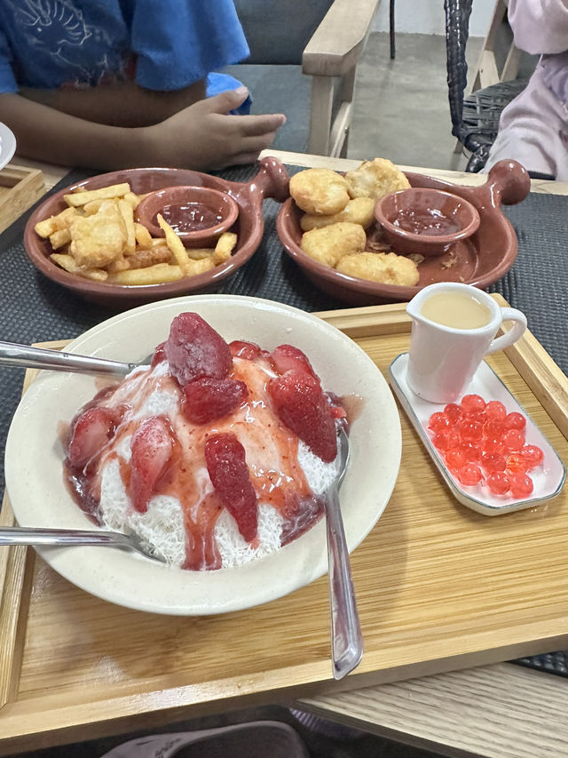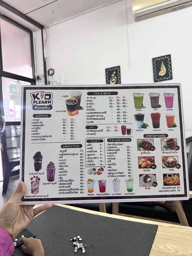 #TravelChat Kid Plearn Cafe is a small, newly opened cafe that's perfect for kids and adults with kids. They offer snacks like French fries, nuggets, bingsu, meatballs, and much more. If you're looking for something that won't fill you up, this is the place to go. Prices are affordable: bingsu starts at 59 baht, and snacks start at 20 baht. If you're passing through the 5-way intersection of Muang 4 Yala, it's near the 5-way intersection on the way to Phatthana School. Don't miss this place! #YalaCafe