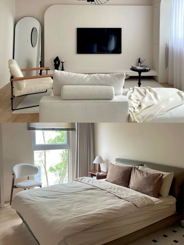 u Like sunday & All I can say is... I will regret not collecting it... This is the most beautiful private B&B I have ever seen Focusing on the home atmosphere of cream brown color This is also a photo studio All decorations and furnishings present a high-end quality It’s really not an exaggeration! Our entire stay I said probably 100 times, "It's really beautiful here." Recommended to those of you who like to take photos~~ For detailed introduction, continue to read below (Q (')8)) 1F wood tone kitchen Sterilized drink dispenser and Italian double capsule coffee machine are provided. And ceramic stoves and simple dinner plates and cutlery are available! ! The free minibar mainly features Korean biscuits and instant noodles And there are a lot of photo props in the drawer There is no need to bring your own to celebrate your birthday, no problem 6()9 In addition, there are monitors installed in the public areas on 1F If you mind, you might want to evaluate it. (Cameras are only used for security surveillance 4) 2F French-style living room & cream-based warm master bedroom, you will be amazed and screaming when you open the door + Xiao Que Yao’s simple and fashionable furniture selection Plus the natural light coming in from the floor-to-ceiling windows Really crazy beautiful! I like it very much\(°▼°)/ Next is the cute cloud bed frame It is very comfortable to sleep with the bedding made of Tencel material. The warm-toned design also has the comfort of home. The bathroom part is a separate shower room. The hot water is hot enough! The water pressure is strong enough! Don’t be afraid of taking a bath In addition to providing basic supplies There is also a Dyson hair dryer 202 3F two-week atmosphere bedroom One room is wabi-sabi style and feels warm. There is a projector! You can watch movies and listen to music before going to bed The other one is in elegant French style/// There is a small sofa area next to the bed, which is very lazy and comfortable~ The overall stay experience was very good and we liked it very much Summer vacation is coming~~ You can invite your friends to stay there! Remember to take lots of photos! Welcome to share with us·Check-in date: 5/7 •Reservation source: 1G ·Room type: Two floors of 25 square meters (1.2 floors) with kitchen/living room ·Price: $7,000 for a double room on weekdays , recommendation index 9· , Willingness to revisit 8.