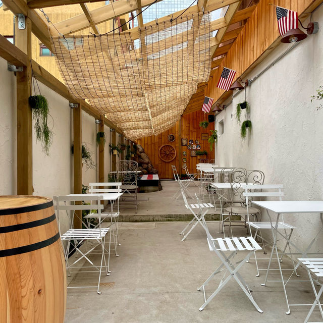 This terrace cafe, What a Bread, in Yongsan has a full American vibe.