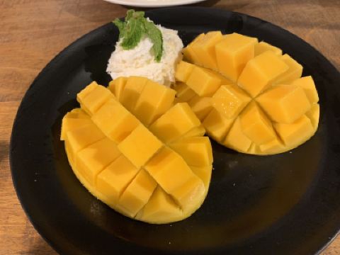 This restaurant is quite famous on Chinese forums. It's located on a street and alley off Nimman Road, so I had to use navigation to find it. The storefront is quite eye-catching. When I arrived, there was a queue, and it seemed like everyone around me was Chinese. However, none of the staff spoke Chinese… Chinese customers are our biggest clientele, so this should be improved. After queuing for a while, it was my turn. The interior is small with only a few tables. When ordering, I was told they were out of mango sticky rice, and everything with sticky rice was sold out… so I ordered sago pudding and something similar. The taste was pretty good! The mango was especially sweet, and the cream wasn't too sweet. 【Overall】The price-performance ratio is average, and with so many Chinese customers, the staff should definitely improve their Chinese and service.