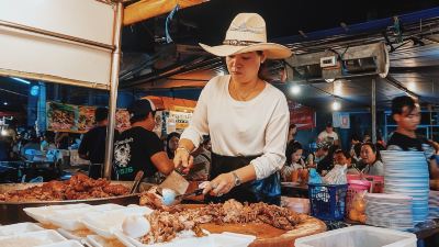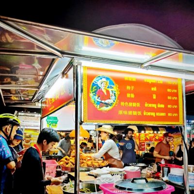 The best pork trotter rice in Chiang Mai is located at the Chang Puak Night Market stall at the North Gate of Chiang Mai. The stall is open at night. The beautiful lady boss wears a cowboy hat every day. A plate of pork trotter rice is only 30B. It is tender but not greasy, and the soup is thin but not bland.