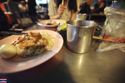 The owner of the pig's trotter rice got the name because she looks like the Taiwanese star Feng Feifei (but I don't know who Feng Feifei is). The pig's trotter rice is divided into large and small portions. The small portion is only 30 baht, but it is really small, about 3 mouthfuls. The pig's trotter in the pig's trotter rice is stewed soft and tasty, and it tastes good with half a soft-boiled egg.