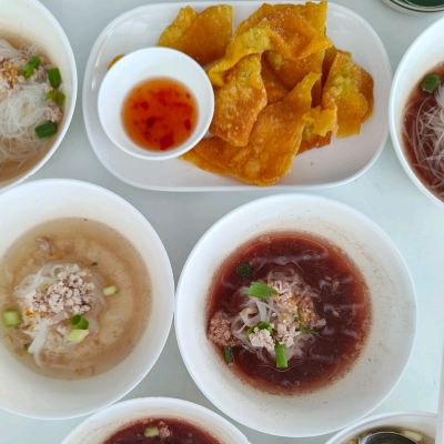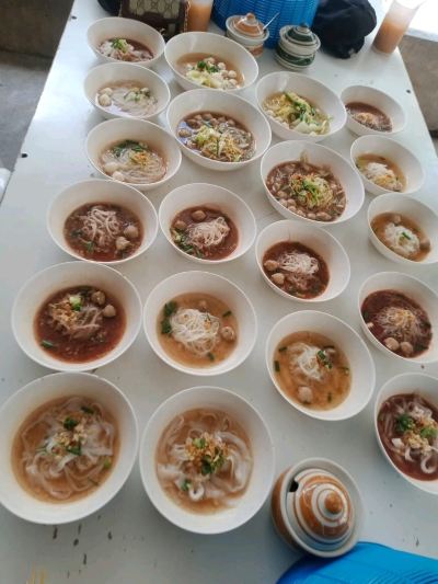 The main attraction of this restaurant is that a bowl of noodles costs only three baht. One person can eat more than ten or twenty bowls, although a bowl of noodles is only enough for one bite. You have to eat many bowls to feel full, but the experience itself is very interesting. There are thin noodles and thick noodles to choose from, and there are thick and clear soups, and there are several types of meat to choose from. The taste is actually not much different, but you can order a few of each to try. The whole process is very interesting. Although the taste is not super delicious, it is not bad. You can try the experience of eating dozens of bowls of noodles.
