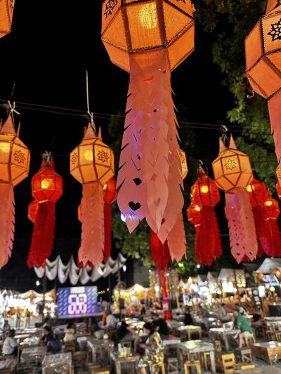 Mr. Kai's restaurant and bar, the Four Heavenly Kings, and the 320 pig, which have received rave reviews, are okay. I didn't eat enough, so I consumed a lot. I asked for a little spicy Tom Yum Goong noodles, but it was still too salty. I only helped with two glutinous rice balls. You can imagine how much I am eager for the next walk, the Saturday night market...