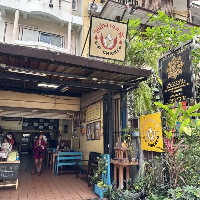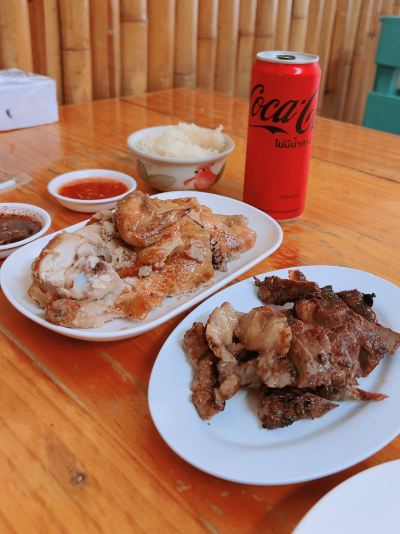 This fried chicken shop is very unique. We ordered the signature grilled chicken and green papaya salad, as well as stir-fried water spinach with minced meat and vermicelli and Tom Yum Goong soup. It is very authentic northern Thai cuisine, a bit spicy and sour, cheap, but the only drawback is that the portion is small.