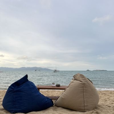 We drove around Samui Island to Bophut Beach, which is located on the north side of Samui Island. The sand is relatively coarse, but this beach bar has a good location and is not exposed to the sun. The music is very European and American. Order a drink and sit down to enjoy it slowly.