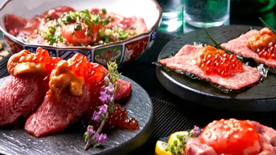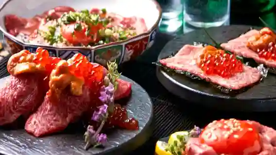 Enjoy all-you-can-eat from a wide variety of items, including kalbi (beef ribs), other meats, vegetables, and appetizers! This is our standard course, which also includes rice, soup, and dessert.