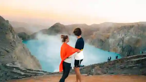 Admire the sunrise over the largest acid lake on Java Island at the top of Ijen