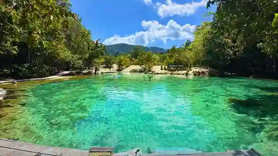 Swim in the crystal-clear Emerald Pool surrounded by nature