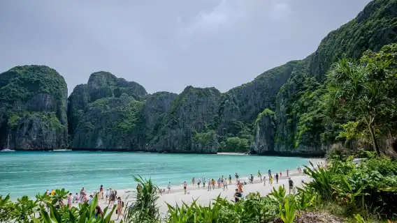 Relax on Maya Bay's white sand beaches surrounded by turquoise waters
