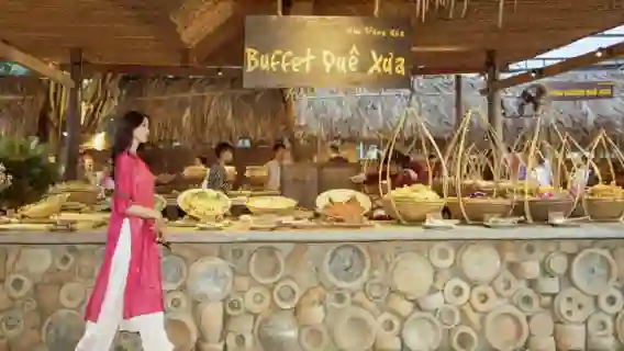 The menu at Buffet Quê Xưa is extensive, offering over 100 traditional dishes from all three regions of Vietnam