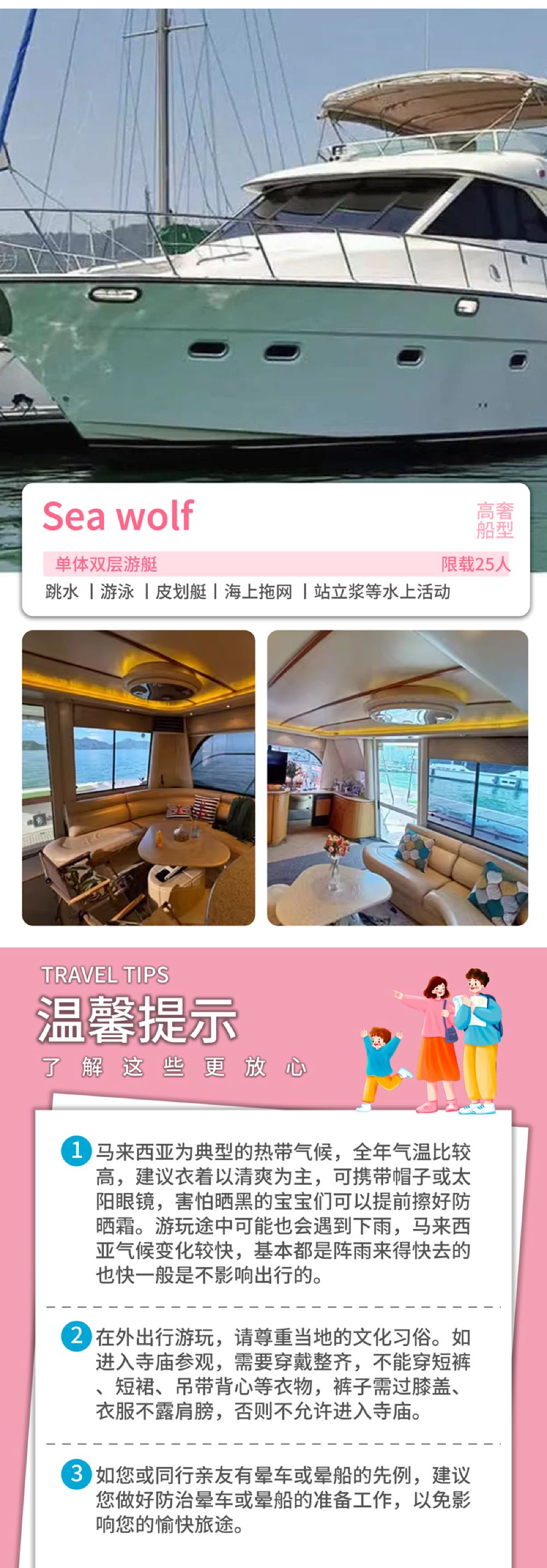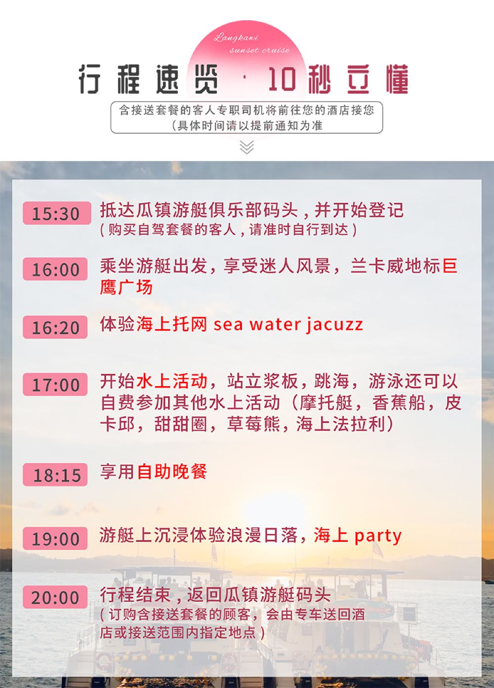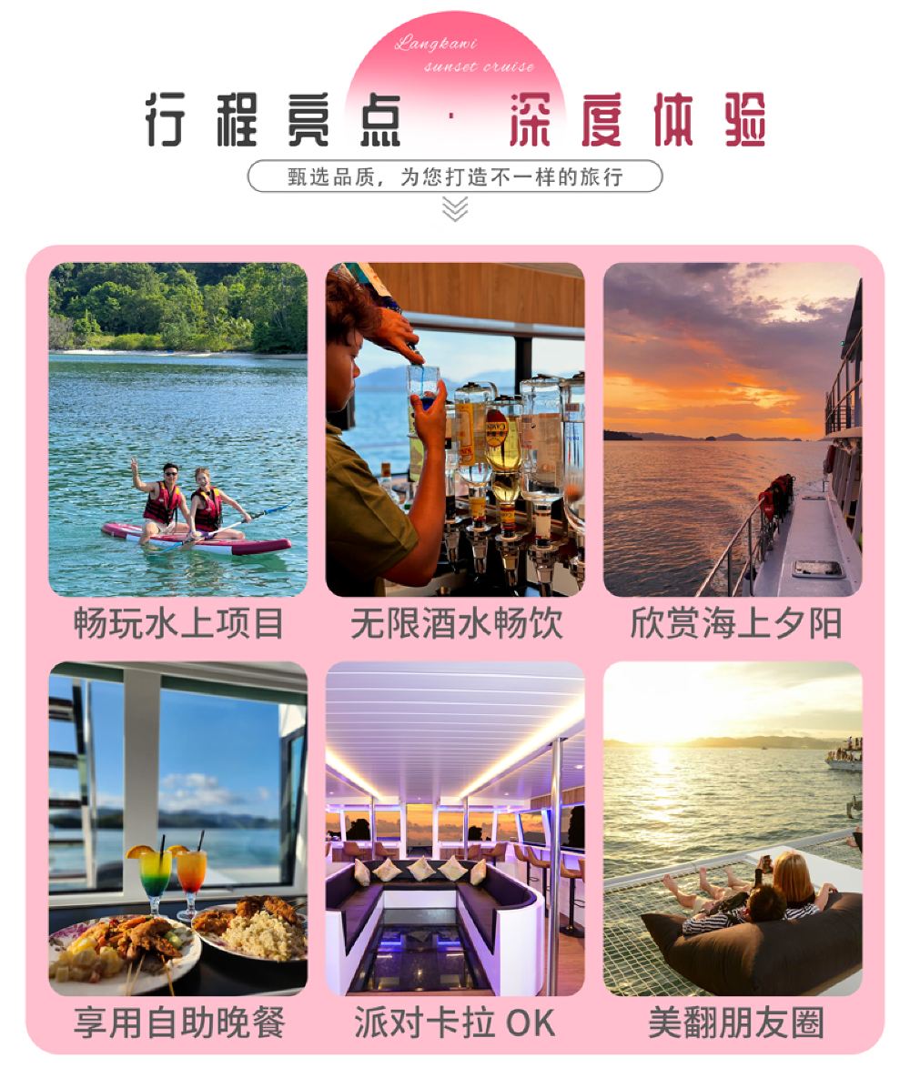Highlights of the itinerary: unlimited drinks, buffet dinner, Chinese-speaking local guide service