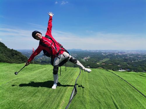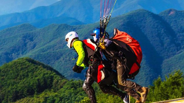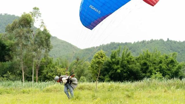 7. During paragliding takeoff, please fully cooperate with the instructor by leaning slightly forward, applying coordinated force, and controlling your body's center of gravity to run in the direction indicated by the instructor until you've completely cleared the mountain slope.