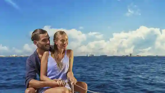 This is a 1-Day Round Trip Catamarán to Isla Mujeres enjoying Snorkel, Beach club, Buffet and National beverages.