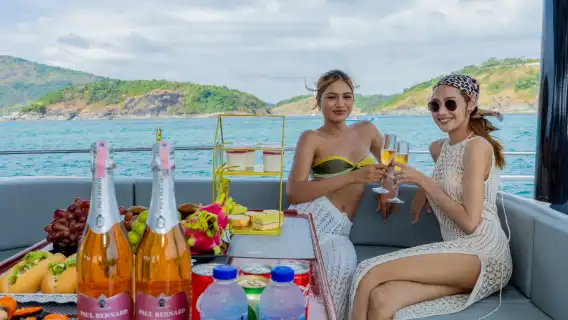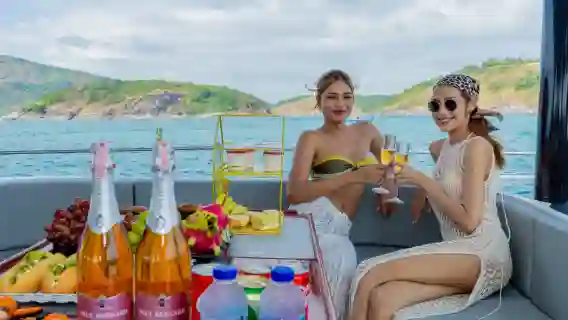 Depart late to watch the sunset, land on a private beach, enjoy DJ live music, foam party, and plenty of water fun