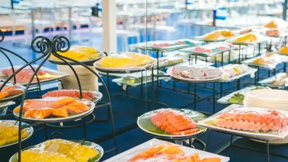The "Hai Tian Sheng Yan Male Model Sea Restaurant" is located on the third floor of this cruise. You can enjoy the endless Pattaya while feeling the sea breeze.