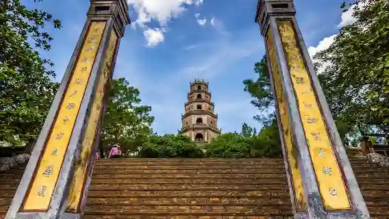 Immerse yourself in the rich history of Khai Dinh Tomb, Thien Mu Pagoda, and the majestic Hue Imperial City