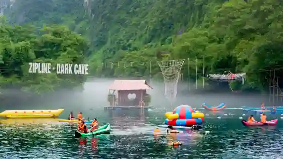 Soar through the air on an exciting zipline ride over the river and paddle your kayak through the pristine natural scenery of the Dark Cave.