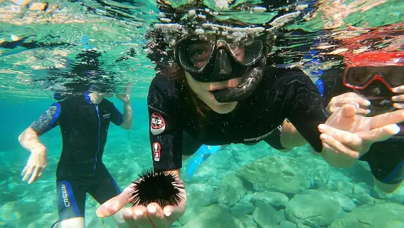 Drift along the surface of Agia Pelagia Bay and marvel at the underwater world