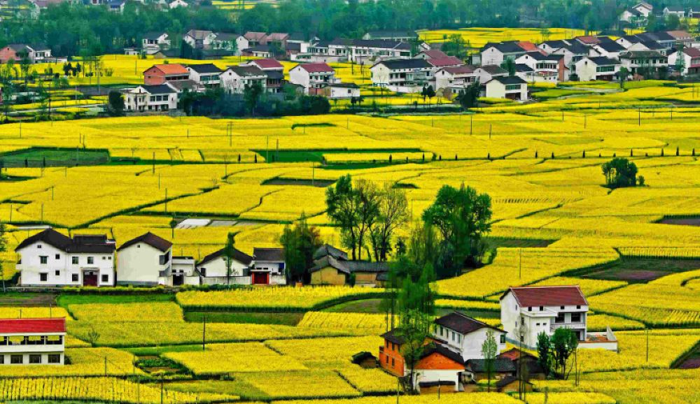 ▲ Hanzhong is located in the transitional zone between the warm temperate and subtropical climate zones. To the north lies the Qinling Mountains, while to the south are the Bashan Mountains, with the Han River flowing across the entire region, forming the Hanzhong Basin. The basin enjoys mild summers without extreme heat and winters without severe cold, with abundant rainfall and humid air. The annual precipitation ranges from 800 to 1000 millimeters, and the average annual temperature is 14°C, creating an excellent ecological environment that provides ideal conditions for the growth of rapeseed flowers. The southern Shaanxi region, particularly Hanzhong, is a traditional rapeseed cultivation base. Every March and April, vast fields of rapeseed flowers bloom simultaneously, offering a breathtaking and mesmerizing spectacle of colors.