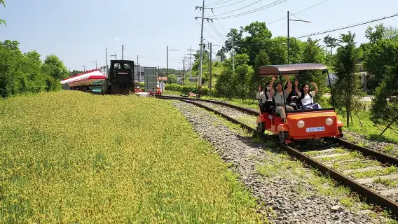 Besides shopping, you can visit the suburbs and try out rail biking in Korea, connecting with nature under the clear sky.