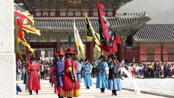 Gyeongbokgung Palace: A representative ancient palace of Korea, where the changing of the guard ceremony and Hanbok experience are highly popular among visitors.