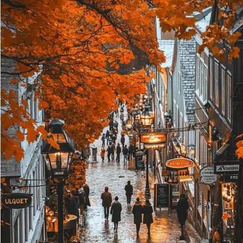 ▲ Quartier Petit Champlain, one of the oldest commercial streets in Canada, features charming boutiques and street performers, creating a vibrant atmosphere.