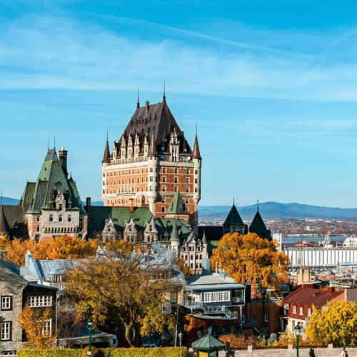 ▲ Dream castle-style hotel offering a romantic overlook of the St. Lawrence River with breathtaking fall views.