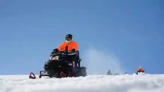 Feel the thrill of snowmobiling on the icy slopes of Langjökull Glacier